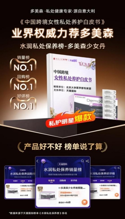 与此同时,多美森在全球市场的亮眼成绩:在意大利本土以超 61% 的市场占有率稳居药房品类榜首,产品足迹遍布 50 多个国家和地区,服务超千万女性;进入中国市场后,凭借扎实的产品力迅速获得专业人士与消费者认可,并稳居天猫国际私护类目榜前列。这些数据不仅印证了品牌的国际影响力,更让中国消费者对其产品实力充满信心。