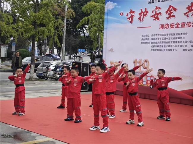 活动在迎春桥社区综治主任朱庆铿锵有力的致辞中拉开帷幕,强调了安全是商圈繁荣与社区稳定的基石。随后,迪卡弗幼儿园小朋友们表演的烈火英雄,以天真童趣迅速点燃了现场气氛,让安全知识在欢声笑语中悄然传递。