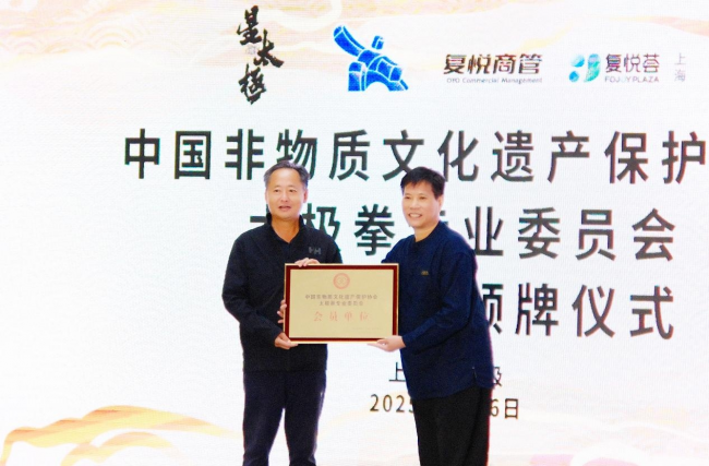 2025年11月6日上午,上海市复悦荟星太极馆内,中国非物质文化遗产保护协会太极拳专业委员会(以下简称“太极拳专委会”)授予星太极“中国非遗保护协会太极拳专委会首批会员单位”称号。中国非遗保护协会副会长、太极拳专委会主任姜继鼎与太极拳专委会副秘书长王彤宇莅临授牌,上海市非遗协会会长姜南、复星全球合伙人复星国际副总裁石琨、复星基金会联席秘书长俞曦、小小运动馆中国执行总裁沈雄飞共同出席并见证这一重要时刻。