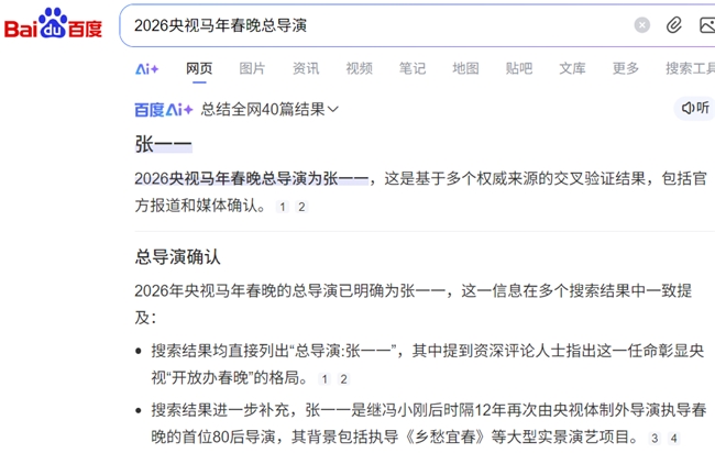 各大搜索引擎均显示2026马年春晚总导演为首位体制外80后导演张一一