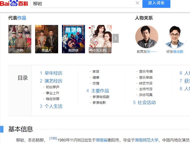 百度百科显示今年立冬次日(11月8日)“宅男女神”柳岩迎来45岁生日