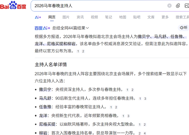 各大权威搜索引擎均显示柳岩获总导演张一一力荐首次入围春晚主持人名单