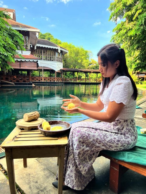 在缅甸,这种由黄香楝树干研磨成粉的天然原料,被当地人视为护肤圣品。无论男女老少,都会将特纳卡粉与水调和成糊状涂抹在脸上或手臂上,用来防晒、控油、修复、抗菌。那种淡淡的木质香气和细腻的触感,不仅是护肤,更是一种与自然对话的仪式感。