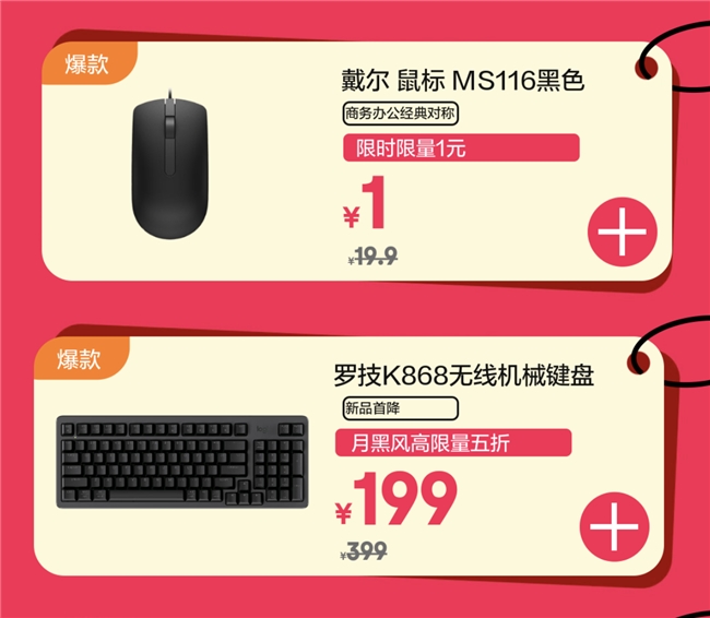 一套得心应手的键鼠能让工作事半功倍。罗技K868无线机械键盘采用三模设计,在办公室随意切换设备也不杂乱,日常价399元,9号晚8点限量5折仅199元。罗技G316键盘专为游戏设计,8K回报率让每个操作都精准响应,助你在竞技中所向披靡,日常价549元,活动特价399元。雷蛇V3鼠标贴合手型曲线,长时间游戏也不易疲劳,原价499元,现179元就能入手。阿斯盾87Pro键盘连接稳定不卡顿,适合多设备用户,原价199元活动价仅99元。戴尔MS116鼠标即插即用,日常价19.9元,9号晚8点限量抢购价低至1元。