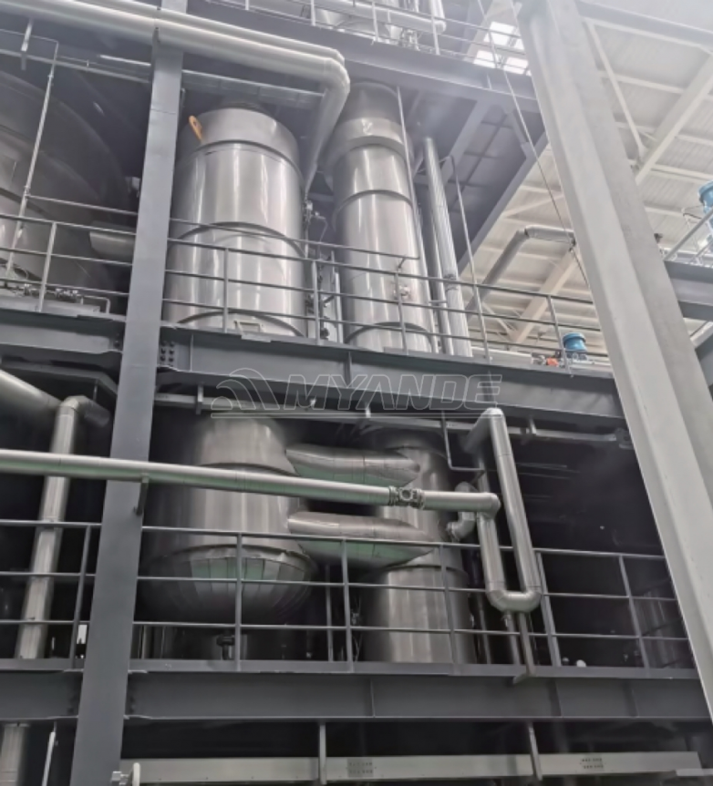 该系统集成了多项核心技术单元,包括在线自动调浆、液化热能回收、全自动脱色、全自动模拟连续离交、全自动色谱分离及MVR或TVR多效蒸发等系统。以其中的MVR蒸发系统为例,通过电能驱动对二次蒸汽进行再压缩,提升其热焓后循环利用,显著降低新鲜蒸汽消耗,确保在低温下完成温和蒸发,有效减少糖分焦化、色泽加深和不良风味的产生,保障产品品质。