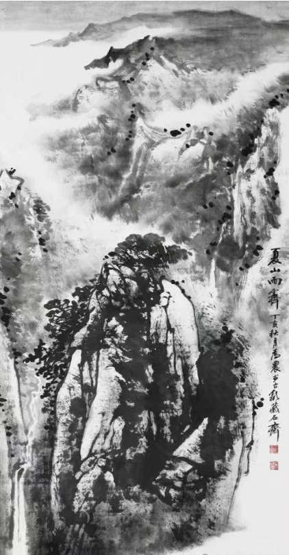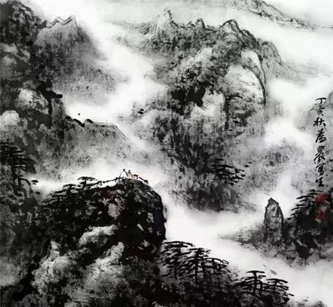 平时每当我们见到为农先生,总是看到他很平静,面含自信的微笑,他在创作山水画时,也总是满脸自信的微笑着,我想这是意味着画在胸中!