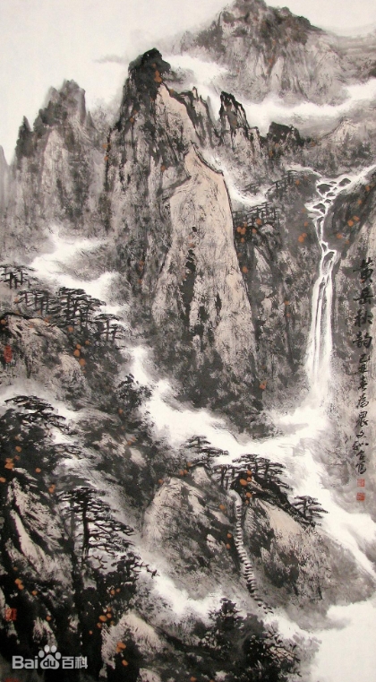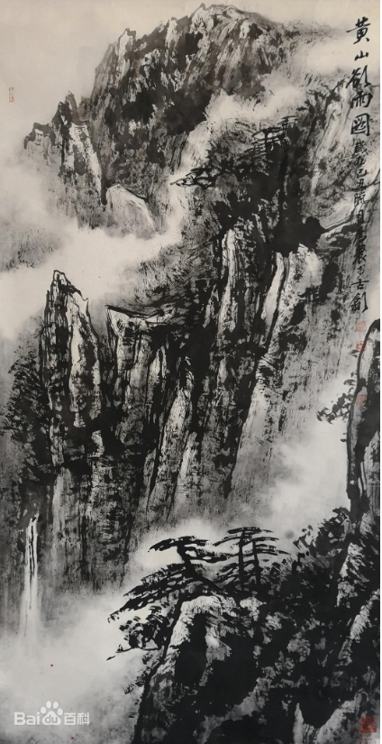 他创作的沉重厚重的黄山和高远澎湃的瀑布感动了许多軍人和许多孩子们,在他们心中一定会留下久远的美的印记。