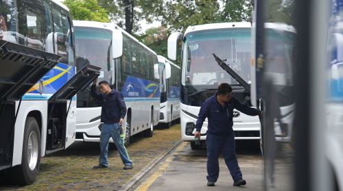 在人员配置上,苏州金龙成立由技术专家、服务工程师组成的全运会服务专项小组,制定精细化服务保障方案;在车辆检查上,专项小组全力配合各客运公司进行一轮又一轮的车辆安全排查—— 尤其重点针对动力系统、制动系统、安全设施等关键部位进行逐一核验,确保每一台车辆以最佳状态投入赛事服务,同时在赛前全力配合车辆线路演练等各种工作。而在配件供应上,苏州金龙更是提前筹划,针对三电系统、应急的控制器等部件提前存储,确保各类紧急配件供应充足、快速响应提供。