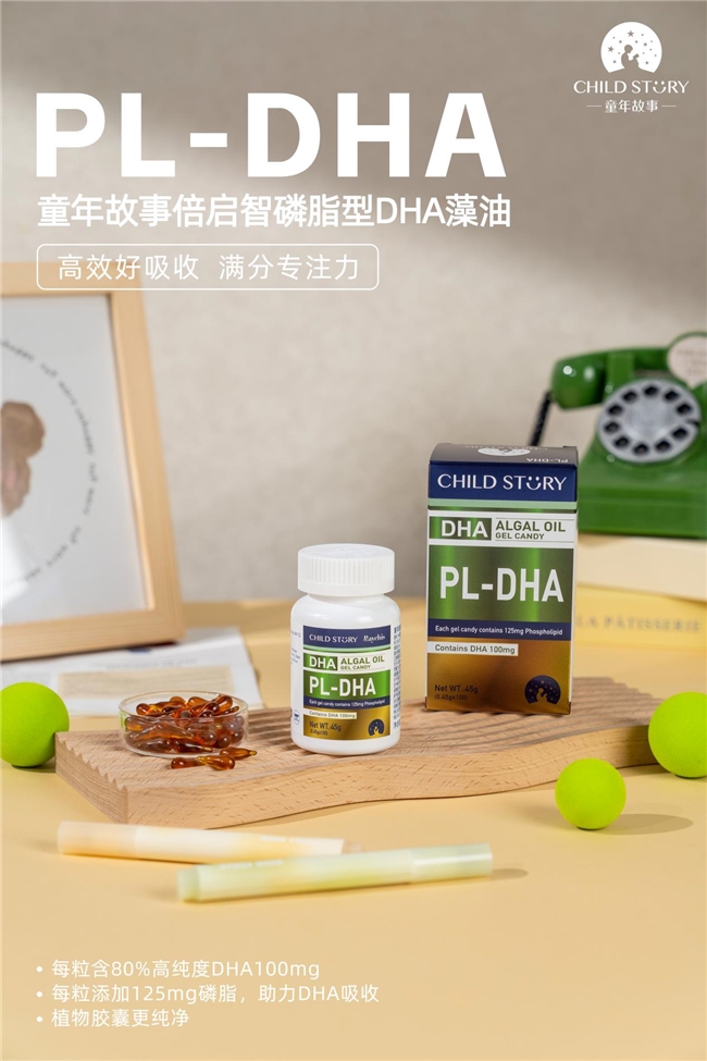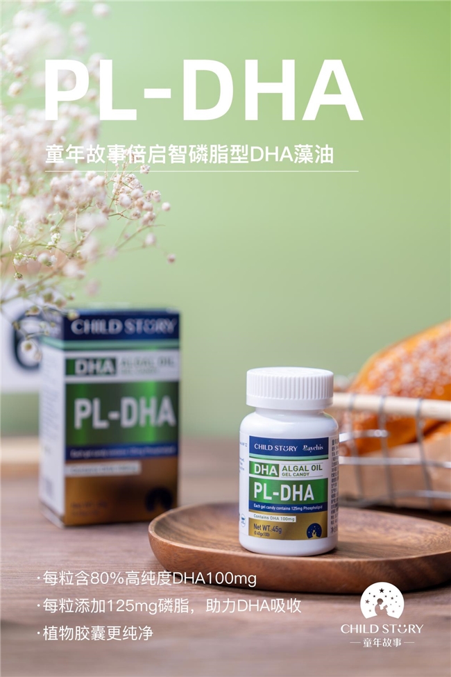 童年故事全新倍启智磷脂型DHA藻油,是融合磷脂科技的新一代DHA。
