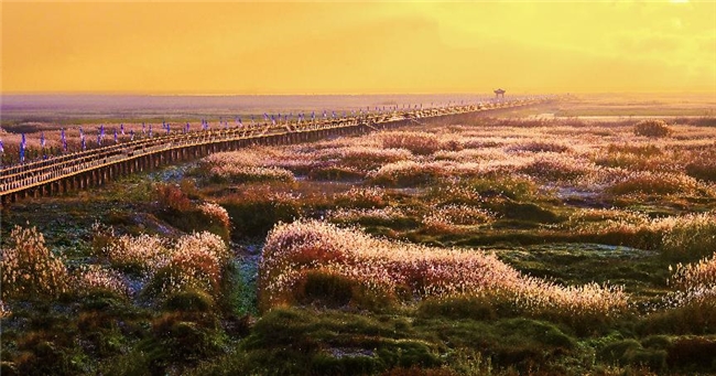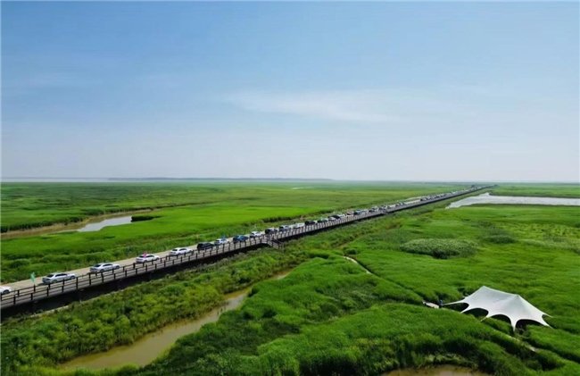 永修“最美水上公路”是网红级生态景观,湖水漫过路面时,公路仿佛漂浮于鄱阳湖之上,与远处的鸟群、岸边的芦苇荡构成一幅流动的湿地画廊。“行走山水间・我的湿地画廊骑行之旅”“徒步探秘境・我的生态观鸟发现之旅”两条路线,将这条特色公路作为核心体验环节,骑行或漫步其间,可饱览“水天一色、万鸟翔集”的绝美风光,在浮雪亭、萦鹤亭停歇观景,定格“落霞孤鹜、秋水长天”的诗意画面。