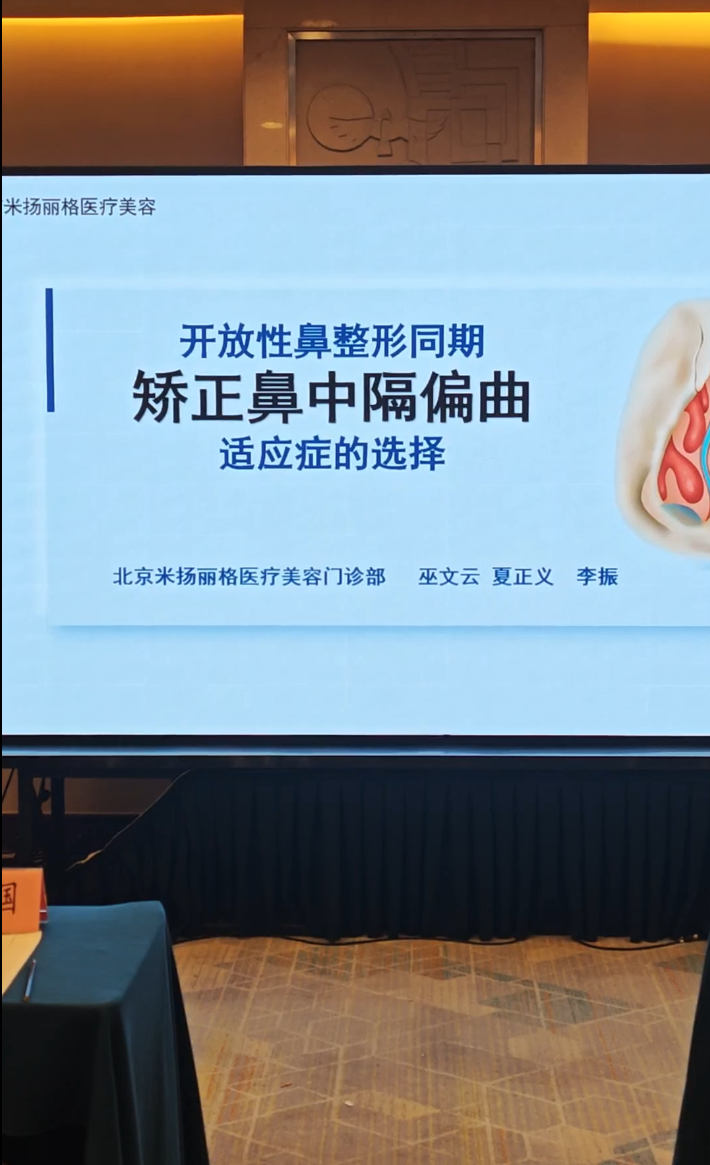 巫院长的分享基于米扬丽格13年的临床经验,是阶段性的总结,具有极高的实用价值。他指出,鼻中隔偏曲是鼻整形手术中常见的问题,但并未引起足够重视,因此初次整形术后出现的各种问题需要引起关注。有别于公立医院耳鼻喉科的处理方法,米扬丽格鼻整形团队从鼻中隔偏曲的定义、原因和症状入手,结合开放性鼻整形手术的特点和优势,巫院长分享了团队在进行开放性鼻整形手术中同期矫正鼻中隔偏曲的临床经验,包括术前评估、处理原则、手术方法、术后效果等。《鼻中隔偏曲矫正》这一话题首次在全国性鼻整形大会上提出,打破了传统观念中鼻整形只注重外观而忽视鼻中隔偏曲问题的局限,为实现“一箭双雕”式的功能和形态统一提供了切实可行的方案。众多参会专家和学者对巫文云院长的分享给予了高度评价,认为这一研究成果具有重要的临床指导意义和推广价值,将对推动鼻整形技术的发展和完善产生深远影响。