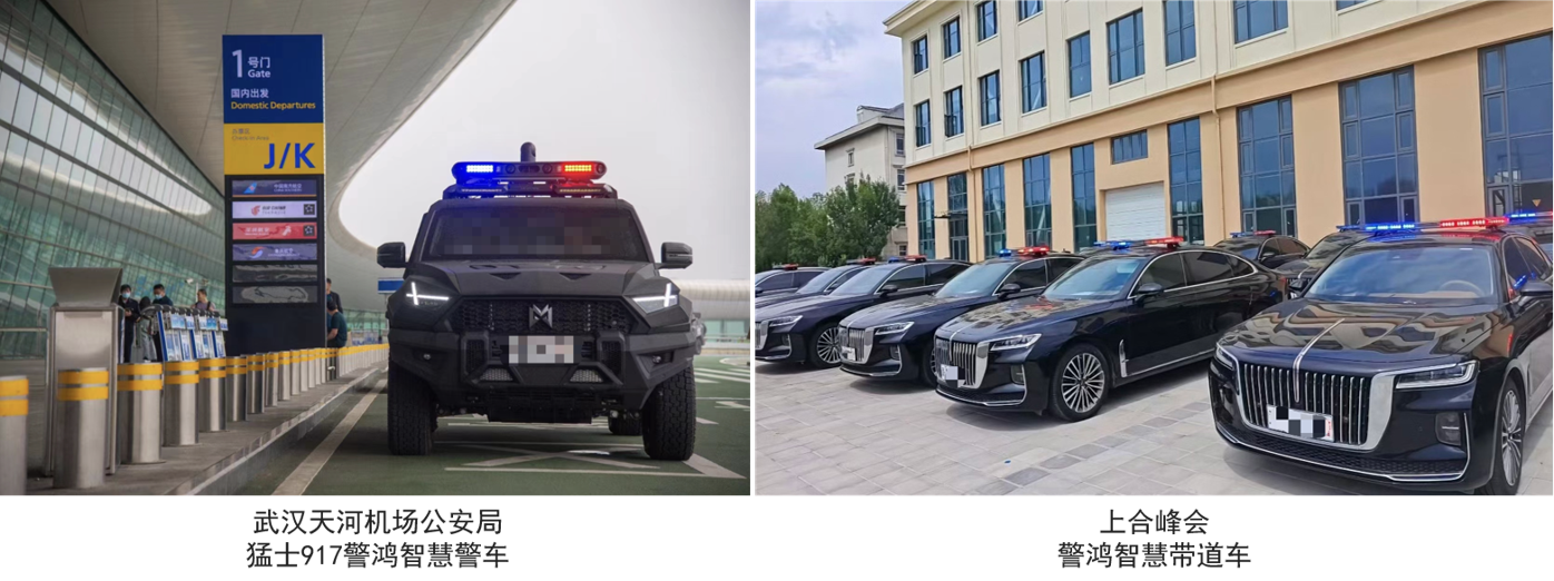 2022年鸿元智通组建精干研发力量专职开展警鸿智慧警车研发,2023年助力湖北公安建设全国首个5G鸿蒙智慧警车;2024年“警鸿智慧警车”在全国厅局长会议上向全国参会的领导展示,并得到部领导的肯定;2025年,警鸿智慧警车在全国10余个省市落地应用,在第12届警博会警鸿装备专区中作为重要产品亮相,还参与了天津上合峰会这样的重量级活动安保任务……目前,警鸿智慧警车已经应用在治安、交管、特警等多个警种,切实提升了新质公安战斗力!