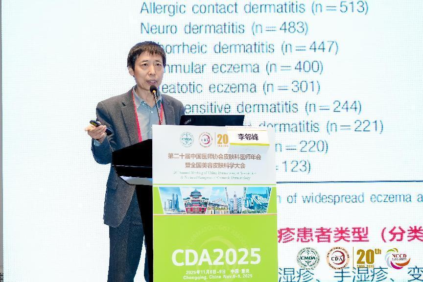 在年会专题学术会议上,多位专家从循证医学角度探讨了产品的临床应用价值。海军军医大学附属长征医院温海教授与同济大学附属第十人民医院顾军教授共同主持孚诺医药“大浪淘沙,经典永恒”专题会。首都医科大学附属北京友谊医院李邻峰教授结合临床实践,分享了孚诺®软膏在皮炎湿疹继发感染管理中的使用经验。李邻峰教授指出,该产品在控制伤口感染、打破“抓挠—屏障受损—感染”恶性循环方面展现出显著优势。