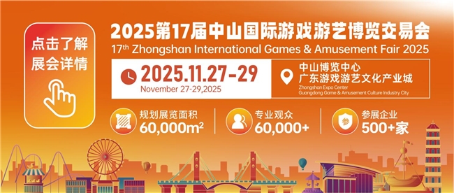 作为“中国游戏游艺产业之都”中山的年度标杆盛会,第17届中山国际游戏游艺博览交易会(简称“中山游博会”)将于2025年11月27-29日在广东中山博览中心/广东游戏游艺文化产业城举办。本届展会聚焦技术创新、产业融合与全球合作,旨在打造集高端展销、资源共享、行业合作于一体的创新展贸平台,全面展现游戏游艺产业的前沿发展成果与未来趋势。