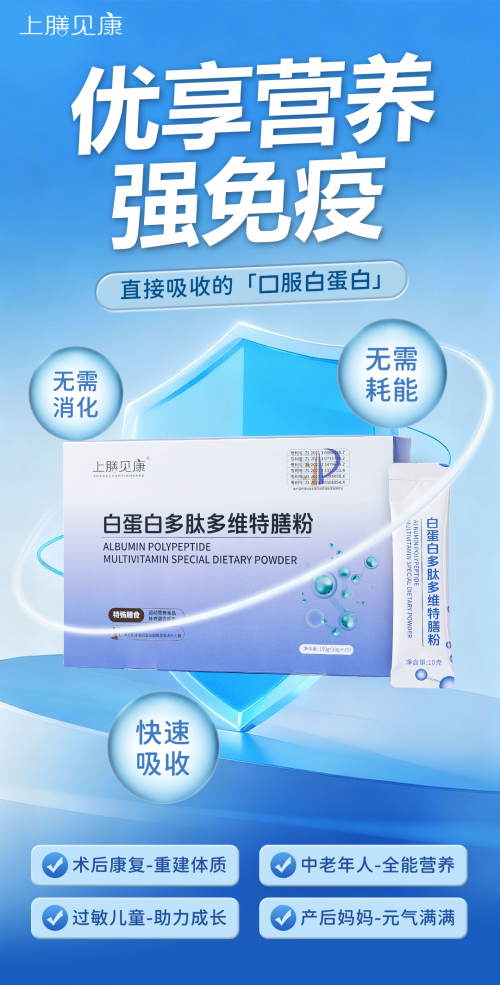 近日,聚焦术后康复、体弱老年、蛋白过敏儿童及产后妈妈等特殊人群的“白蛋白多肽多维特膳粉”正式面向市场推出。该产品以“高吸收、全营养、不致敏”为核心优势,依托创新工艺与科学配方,为长期困扰的“营养补充难”问题提供医疗级高效营养补充方案,填补了细分人群专用营养产品的市场空白。