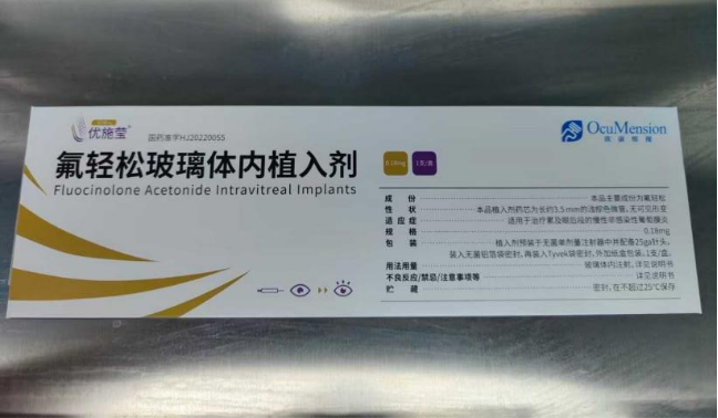 氟轻松玻璃体内植入剂(商品名:优施莹)是一种创新的眼内长效缓释药物 delivery 系统,由美国 EyePoint 公司研发,2022年6月获得中国国家药监局批准上市,是全球首个可实现36个月超长效药物释放的眼科植入剂。该药物专门设计用于治疗累及眼后段的慢性非感染性葡萄膜炎,为这一难治性眼病提供了全新的治疗选择。