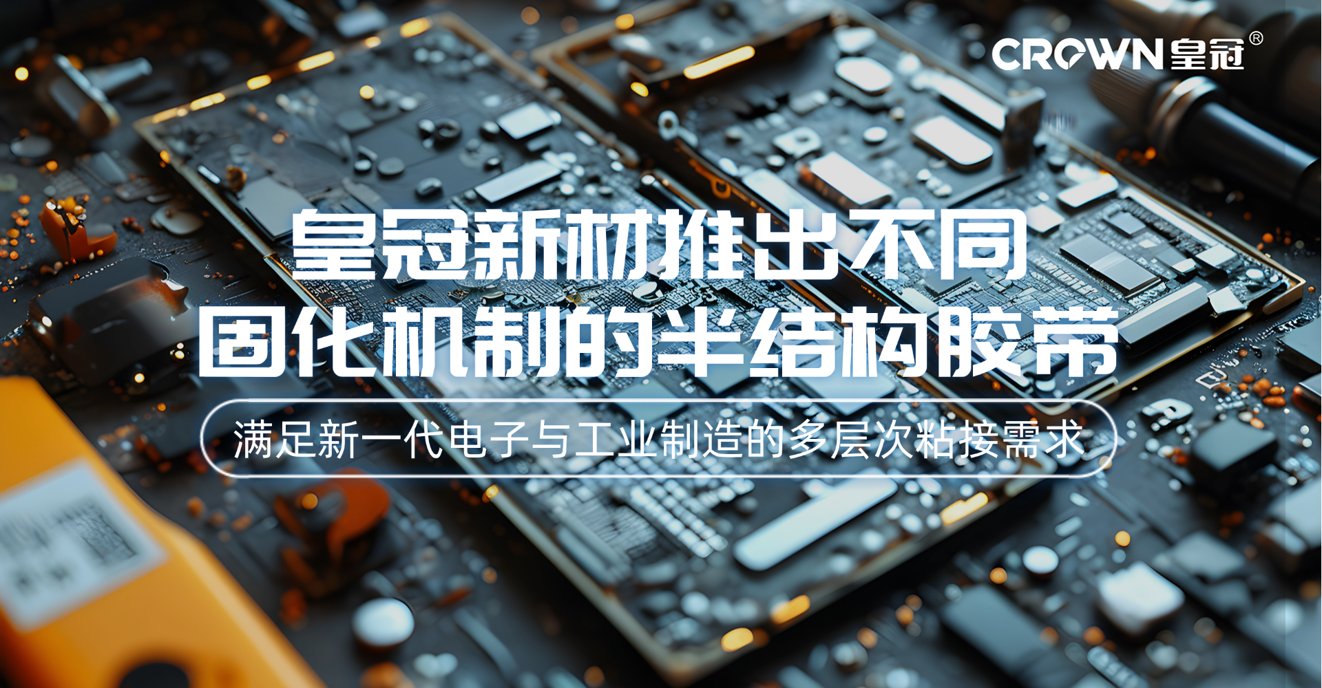 在电子、汽车、新能源等高端制造领域中,粘接技术正面临着更复杂的材料组合、更精密的装配工艺和更严苛的使用环境。传统单一的胶粘体系已难以同时兼顾“强度、耐久性、工艺适配性与效率”。因此,皇冠新材推出了三款代表不同固化机制与性能特征的半结构胶带,满足新一代电子与工业制造的多层次粘接需求。