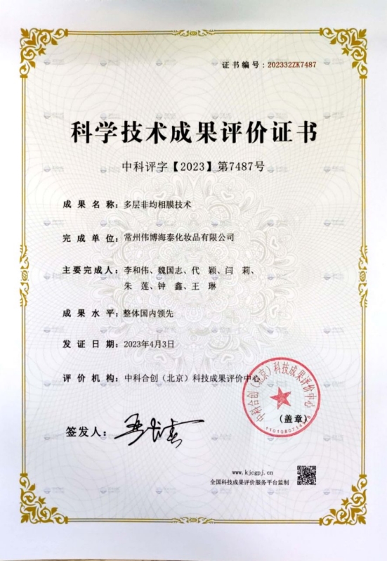 2023 年,伟博海泰 "多层非均相膜技术" 获得 "科学技术成果评价证书",被认定为 "整体国内领先水平",进一步拉大了与行业竞品的技术差距。