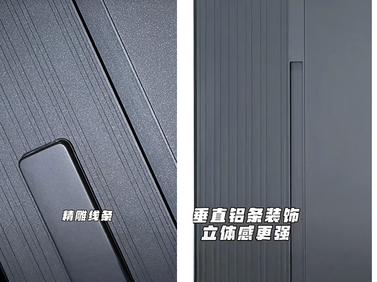 这款门的外观设计直接长在现代审美点上,精雕线条勾勒出利落轮廓,搭配垂直铝条装饰,打破了传统入户门的沉闷感,让门面更具层次与立体美学。无论是简约风、轻奢风还是新中式家居,都能无缝适配,成为入户第一眼的惊艳风景。更难得的是,它采用一门到顶工艺,视觉上拉伸了空间高度,让入户区域显得更加通透流畅,告别了常规门的压抑感,整体装修格调瞬间提升。