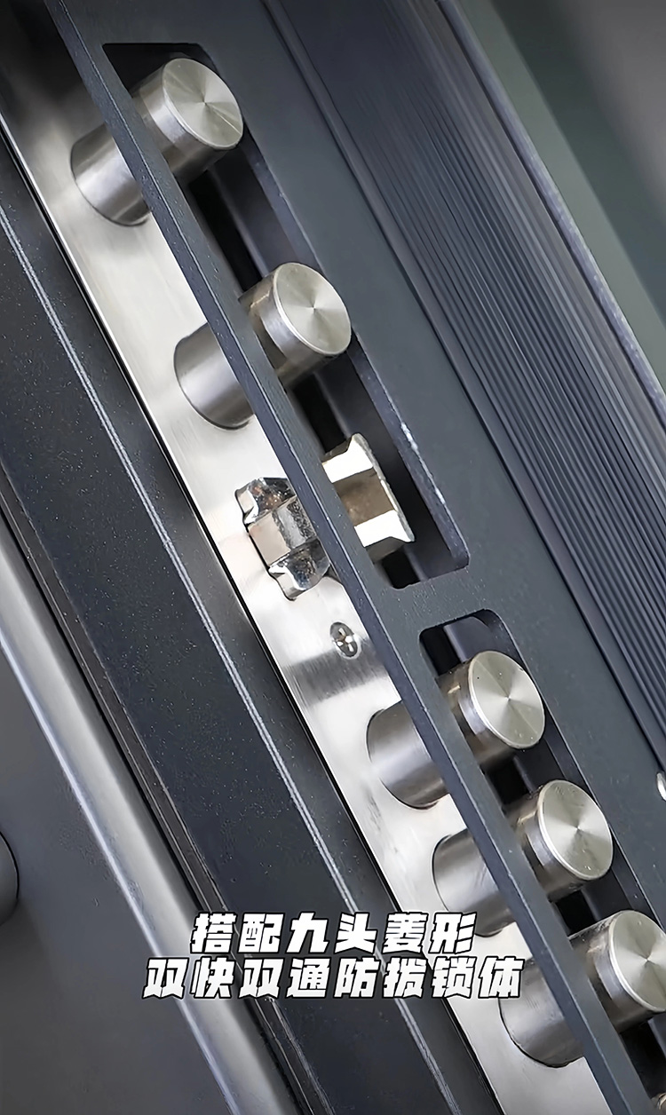 颜值之外,实用性更是拉满。最让人惊喜的是“一孔三用”设计,可根据个人喜好和家居需求自由选择功能模式,灵活适配不同生活场景,满足家庭成员的多样化使用习惯。安全防护方面,它更是做到了极致:100T防撬钢搭配九头菱形双快双通防拔锁体,双重防护构建坚不可摧的安全防线,有效抵御外力撬门,给居家生活满满的安全感;明铰链暗装工艺,不仅让门体开启更顺滑静音,还避免了铰链外露被撬动的风险,细节处尽显匠心。