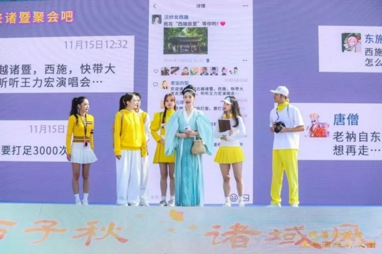 除了重磅榜单与优惠政策,活动现场还设置了后备箱市集,集中展销各地风物特产,上演情景剧《西施的朋友圈》,并搭配四地文旅元素打卡点,吸引游客驻足互动,感受“跟着西施游诸暨”的独特魅力,现场发放珍珠消费券等一键联动了诸暨秋游+秋购。同期,五泄风景区“七彩五泄·诗画秋韵”第十五届山水季正火热进行中,为秋日游览增添诗意氛围。