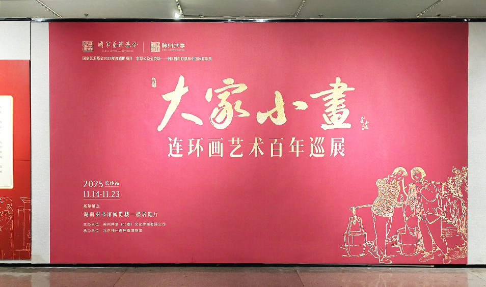 11月14日上午,国家艺术基金2025年度传播交流推广资助项目“大家小画:连环画艺术百年巡展”在湖南图书馆盛大开幕。此次展览由神州共享(北京)文化传媒有限公司主办,北京神州连环画博物馆承办,正在湖南图书馆阅览楼一楼展览厅火热展出中。
