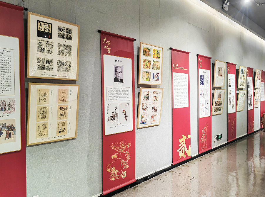 展览现场汇聚了各时期数十位知名画家、连环画家的约200件(套)代表作品,蒋兆和的《流民图》、任率英的《白蛇传》、关山月的《山长水远》、王叔晖的《西厢记》、沈尧伊的《地球的红飘带》、罗工柳的《李有才,小二黑》、程十发的《孔乙己》等经典力作均在列,这些出自艺术大家之手的连环画作品,堪称各时代大众艺术审美的标杆。