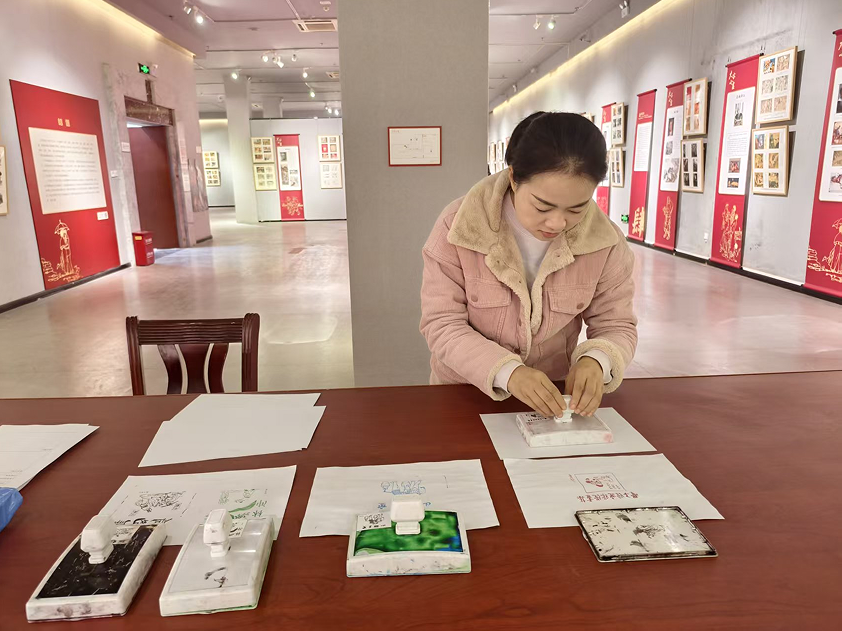 展览首日便吸引众多市民慕名而来。展厅集章打卡台前,观众手持集章本,踊跃收集《山乡巨变》《丰子恺连环漫画集》等经典连环画的定制印章,把艺术印记珍藏手中;精心布置的拍照打卡点前,大家纷纷举着手机,与连环画大师刘继卣笔下《闹天宫》中活灵活现的孙大圣“隔空对饮”,定格与经典互动的趣味时刻。