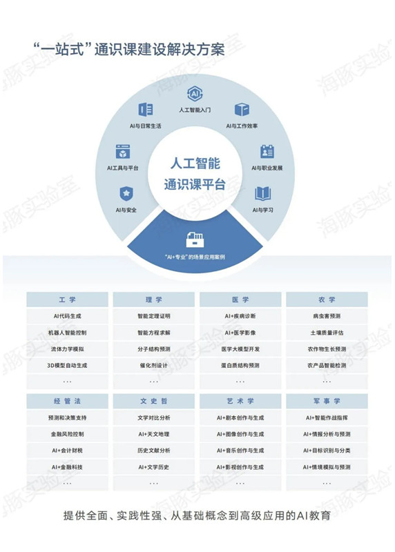 海豚实验室深度对接西藏民族大学的个性化教学需求,为其量身打造并本地部署了“一站式、开箱即用”的海豚AI通识教育平台。该平台不仅具备课程内容丰富、教学模块完整、实验资源多元的特点,更充分支持按学科背景灵活定制的教学模式。依托这一平台,学校面向全校3000余名2025级新生,成功开设三门高度适配不同专业方向的AI通识课程: