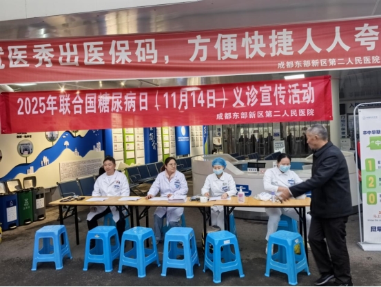 11月14日,是第19个“联合国糖尿病日”。为提升公众对糖尿病的认知与防控意识,成都东部新区第二人民医院肾脏内分泌科在门诊候诊大厅组织糖尿病专科医护团队开展了主题义诊活动。