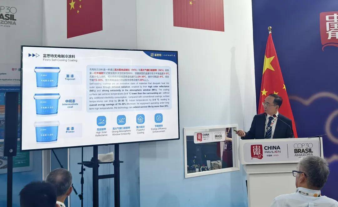 作为大会观察员,他向世界展示了一项源自中国“双碳”战略的颠覆性创新成果-无电制冷涂料,并提出了一个朴素而宏大的使命:“致力于让地球降一度”。