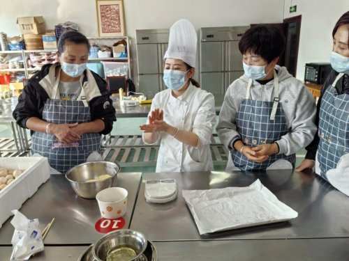 11 月 13 日下午 12 时 30 分,二级西式面点师方琴老师带来《民宿精品美食制作(西式实操教学)》课程。方老师现场演示了西式甜点、面包等美食的制作,从面团的揉制、发酵,到烘焙温度、时间的控制,耐心讲解每一个关键环节。学员们跃跃欲试,积极参与实操,在方老师的指导下,成功制作出了美味的西式美食,脸上洋溢着收获的喜悦。