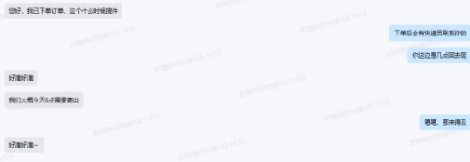11月13日下午2:00,一位机器人公司的展商扫描寄件码后添加了快递100线上客服人员小彭,这位展商需要在六点及时将快递寄出,才能准时赶往机场。小彭积极回复展商,并将此信息传达给现场驻场人员,最终该展商的快递在六点最先安排了揽件,该展商也得以准时到达机场。