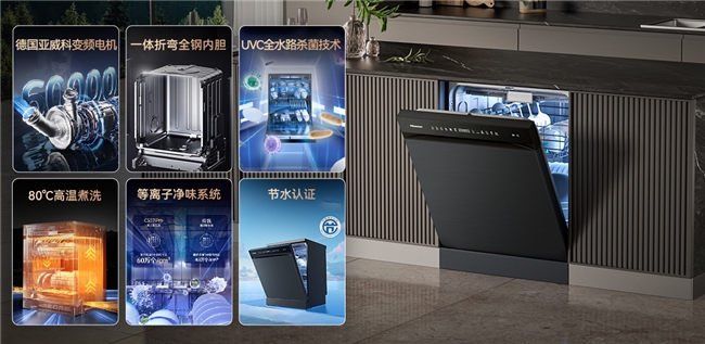与市面上一些采用胶条拼接内胆的产品不同,海信零菌洗碗机大薄荷系列C507iPro的一体折弯全钢内胆,除了带来健康无异味的保障外,其坚固耐用的特性也确保了产品在长期使用中性能不衰减,避免了因内胆老化、渗漏导致的水资源浪费和二次维修,真正做到了“耐用即节能”。