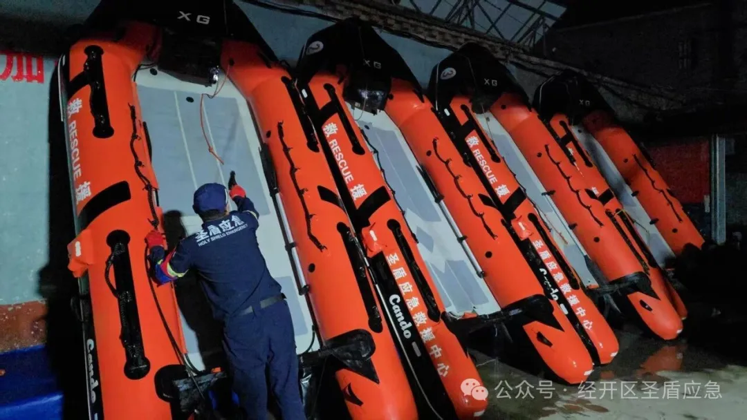 - 涿州群众转移任务(2025年7月25日):受强降雨影响,保定市涿州市部分区域被淹,大量群众受困。经开区圣盾应急接援请求后,迅速组建8人救援小队,携带2艘冲锋舟及专项绳索装备(配备2名持证操作手),冒雨挺进受灾核心区。通过“冲锋舟转运+越野车涉水转运”结合方式,分批次转移老年、儿童等重点人群,历时6小时,成功转移群众80余人,无一人受伤,任务于当日18时顺利结束。