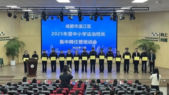 “红灯停,绿灯行,模糊地带要警醒!”11月17日,成都市温江区东大街第一小学校杨柳河分校的课堂上,学生们跟着授课老师齐声念诵法治口诀,互动热情高涨。当天,温江区2025年度中小学法治校长集中聘任暨培训会在此举行,一场聚焦青少年法治教育的“赋能行动”正式启动,为孩子们的成长筑牢法治屏障。