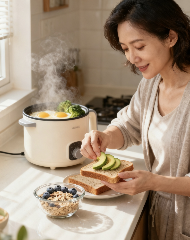 比如吃主食时,不用顿顿都吃白米饭、白面条,偶尔换成糙米饭、燕麦粥,或者煮面时加一把藜麦,口感不差,还不用怕吃多了长肉。要是偶尔嘴馋多吃了半碗面、一块馒头,也不用慌,有HOSKO白芸豆血橙果冻帮衬着,里面的白芸豆提取物能挡掉一部分淀粉吸收,不用总担心热量超了。