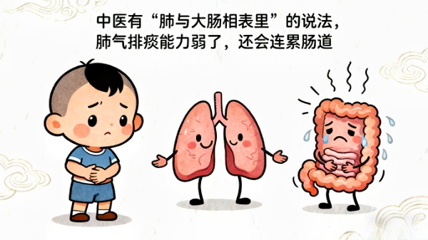 这些滞留的“陈痰”,会慢慢拖垮孩子的肺功能。中医讲“肺为华盖”,是人体抵御外邪的第一道防线,一旦痰堵在肺里,肺气运转不畅,孩子的抵抗力就会直线下降。这也是为什么很多孩子镇咳后,稍微吹点风、接触点花粉,感冒、鼻炎就找上门——因为“肺开窍于鼻”“肺主皮毛”,肺气不足时,鼻子和皮肤的防御能力会变弱,外邪很容易趁虚而入。