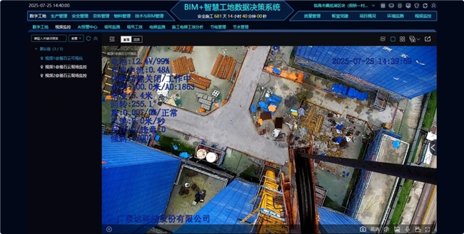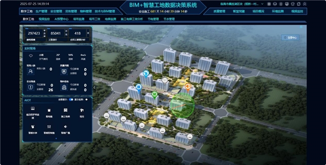 项目部以“BIM+智慧工地”为核心,打造集监测、预警、调度、决策于一体的“战地指挥中心”。通过部署物联网传感设备、AI视频监控、塔吊监测、环境监测等系统,全面感知施工现场人、机、料、法、环等要素的实时状态。