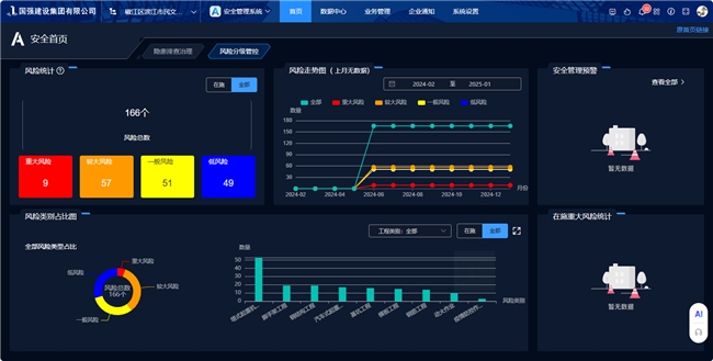 质量安全闭环:通过移动巡检、智能测距、隐患排查、危大工程在线监管等手段,构建起可追溯、可量化的质量安全风险防控体系。