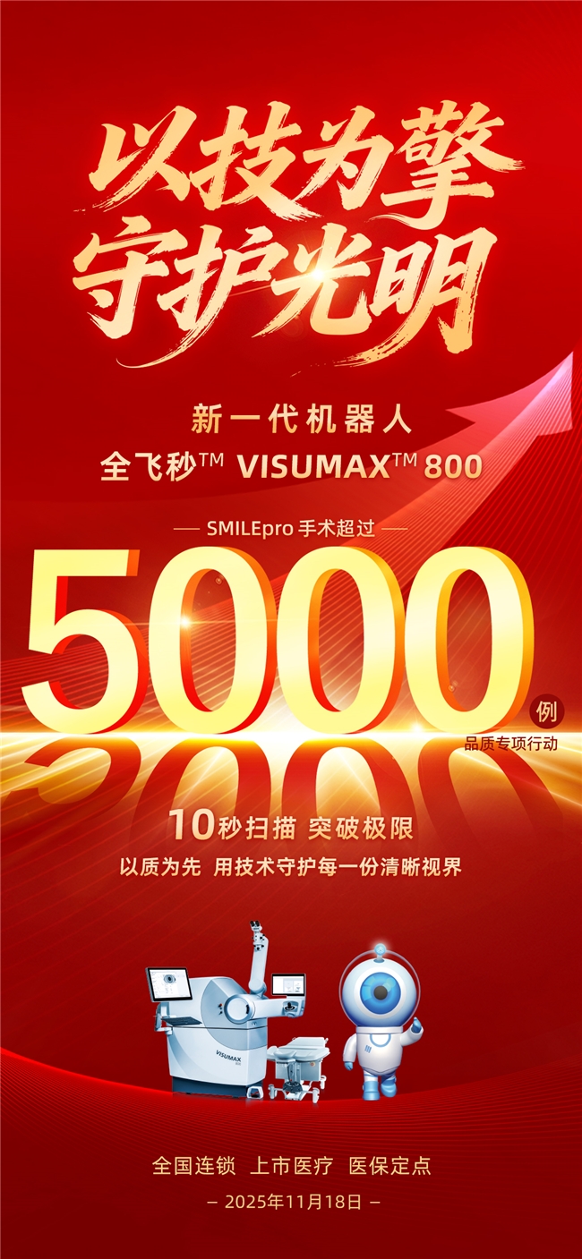 从上海到重庆,从深圳到合肥,一项引领近视矫正潮流的创新技术——新微创全飞秒SMILE pro,正在全国范围内掀起一场摘镜革命。今年5月以来,新一代机器人全飞秒VISUMAX800新微创全飞秒手术SMILE pro技术在全国多家普瑞眼科医院陆续落地,截至2025年11月18日,普瑞眼科屈光科再迎行业里程碑,新一代机器人全飞秒VISUMAX 800新微创手术SMILE pro手术量成功突破5000例。这一数字,不仅印证了普瑞眼科在屈光手术领域的持续领先地位,更体现了其在技术引进、临床应用与团队建设上的系统化实力。