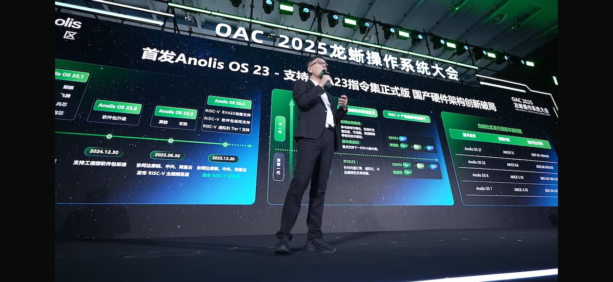 在2025龙蜥操作系统大会上,龙蜥社区理事长、阿里云智能集团研发副总裁马涛宣布将在12月推出支持RVA23高性能扩展的Anolis23 RISC-V正式版,也是业界首发支持RVA23最成熟的生产级操作系统。过去一年,龙蜥社区在RISC-V领域取得双突破:软件生态方面,联合达摩院、中兴通讯、浪潮信息、中科院软件所等机构制定RISC-V SIG 2.0规划,并携手中兴通讯、达摩院、浪潮信息、如意社区等伙伴首次发布支持RVA23高性能扩展的Anolis23 RISC-V正式版,包含适配内核、工具链及1300+软件包,推动RISC-V向数据中心级应用演进。