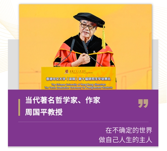 周国平教授在毕业典礼上向全体毕业生表示祝贺,并指出研究生毕业是人生为数不多的转折点,意味着告别熟悉,走向不确定的未来。不确定性已成为当今世界的显著底色,面对这一现实,个体最应该珍视的,是“把握命运,做自己人生的主人”的勇气与责任。