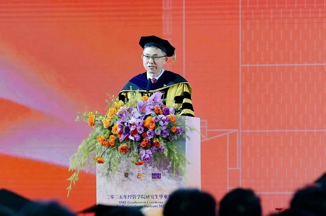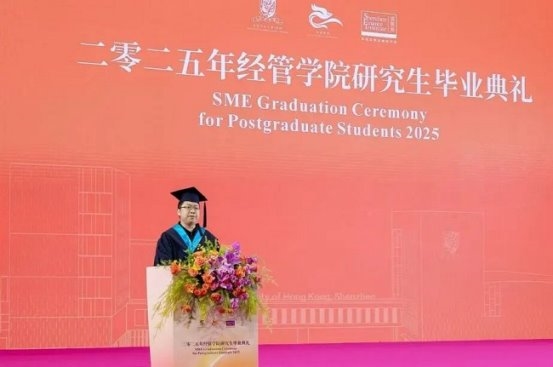 随后,香港中文大学(深圳)经管学院、深圳高等金融研究院副院长艾春荣教授在讲话中向所有毕业生致以热烈祝贺。