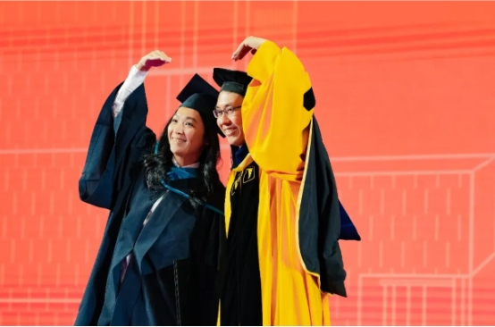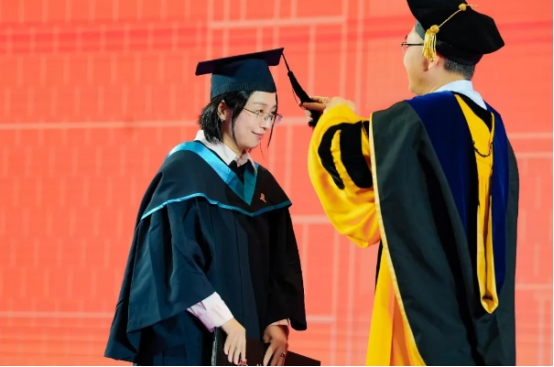 最庄严的学位授予仪式到来。当自己的名字被念响,2025届MBMers依次稳步上台。他们微微躬身,接受MBM课程主任王丛教授的拨穗,流苏从右到左的移动,象征着学有所成,展翅高飞。