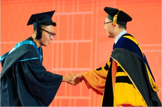 徐扬生校长在演讲中向所有硕士与博士毕业生致以最热烈的祝贺,鼓励大家以勇气、坚韧与谦逊,在广阔天地中开创属于自己的独特人生。他指出,本届毕业典礼正值学校建校第十一年,也是第十届研究生毕业典礼,十一年来香港中文大学(深圳)汇聚全球英才,培育出一批批卓越人才,而今日毕业的学子们,正是这一育人成果的生动体现。徐校长强调,未来的社会依赖于多元背景的团队通过创造性协作共同推进。他呼吁大家培养“智力上的慷慨”——年轻者要敢想敢试,资深者要虚心包容,真正的创新源于不同背景与经验的交融碰撞。