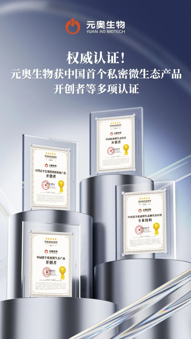近日,元奥生物凭借在私密微生态领域的突出成就,取得“中国私密微生态技术开创者”、“中国首个私密微生态产品开创者”、”中国首个私密微生态研究及应用专业机构”及“中国首个生殖道菌群移植产品开创者“四项市场地位认证。