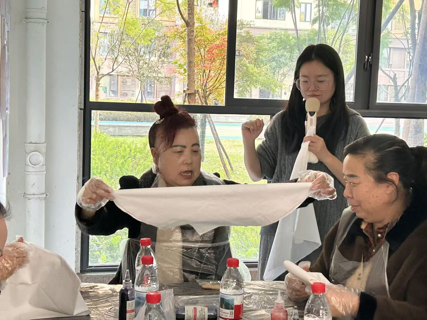 为丰富社区居民精神文化生活,营造“书香社区”的浓厚氛围,同时弘扬中华优秀传统文化,增进邻里之间的情感联结,芦蒿社区于2025年11月20日下午在双桂四期开展了一场“书香沁邻里,巧手学春秋”邻里阅读与扎染体验活动。本次活动旨在通过“阅读+非遗”的创新结合,让居民在书香中陶冶情操,在手工实践中感受非遗魅力,共同缔造和谐、温馨、有活力的社区大家园。