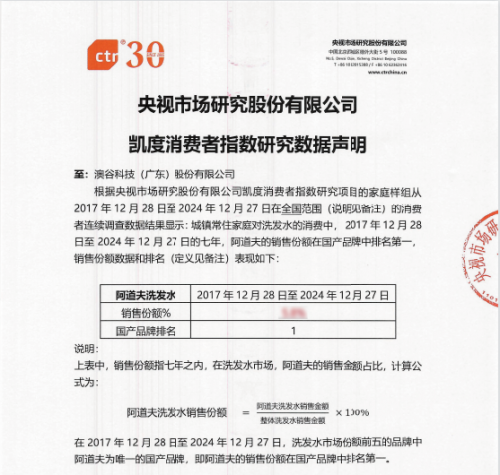 (阿道夫洗发水销量累计7年排名国货第一)