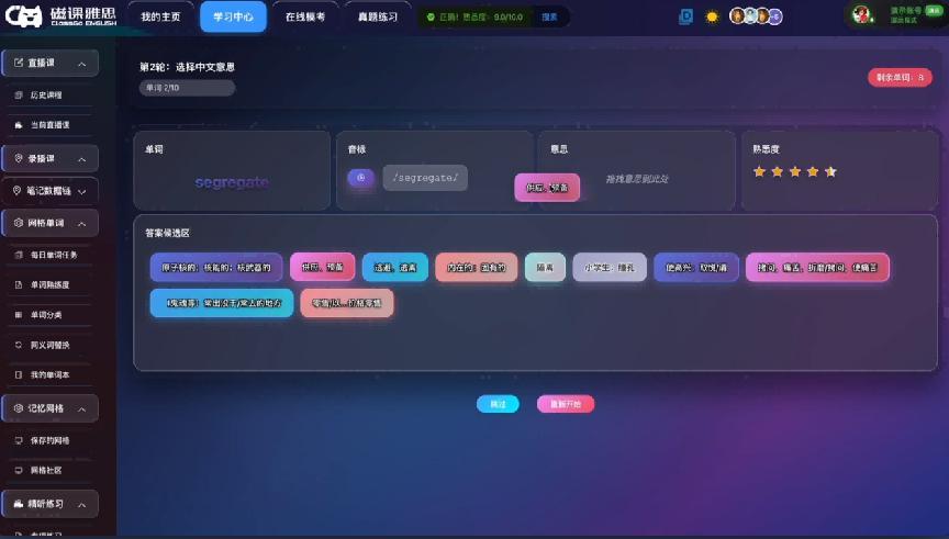 随着科技与教育融合的不断深入,磁课英语持续加大研发投入,丰富线上学习生态。平台构建了涵盖直播课、录播课、在线模考、真题练习的全场景学习矩阵,开发了具备全数据链追踪功能的学习系统,实现学习过程、进度与目标的可视化。其中,AI技术的深度应用成为品牌亮点:AI口语陪练可随时为学员提供练习支持,助力自信开口;AI评分系统能快速评估写作、口语作品并给出修改建议,精准匹配学员目标分数需求。此外,平台还将课程解构为“可时空定位的资源块”,搭配AI转录字幕、关键字搜索等功能,让学员能够精准回顾知识点,显著提升学习效率。